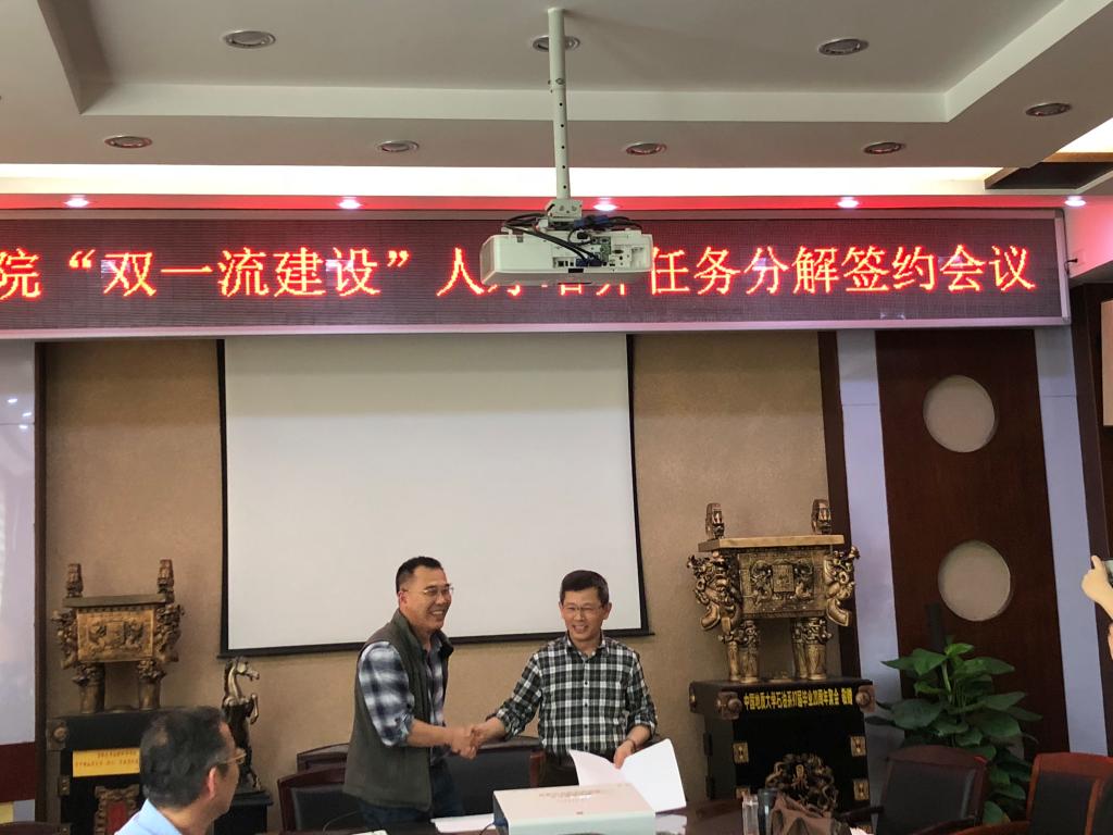 分别与四个专业负责人签订了人才培养任务分解协议,在协议中明确了建设任务及权利。李建威院长最后总结发言。