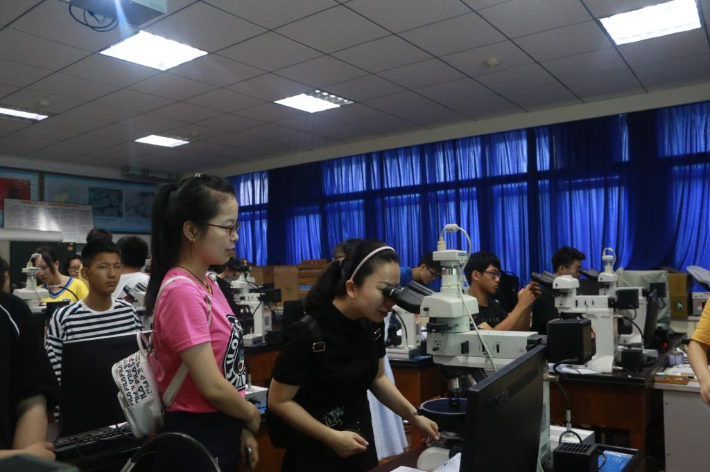 7月11日上午8:30,“体验地球科学之石头会说话”在主楼330、332实验室开展。江满容老师和刘安璐老师指导学生进行镜下光片鉴定和矿石标本观察。通过观察和实践,营员们了解了基本的矿石类型及矿产禁漫天堂