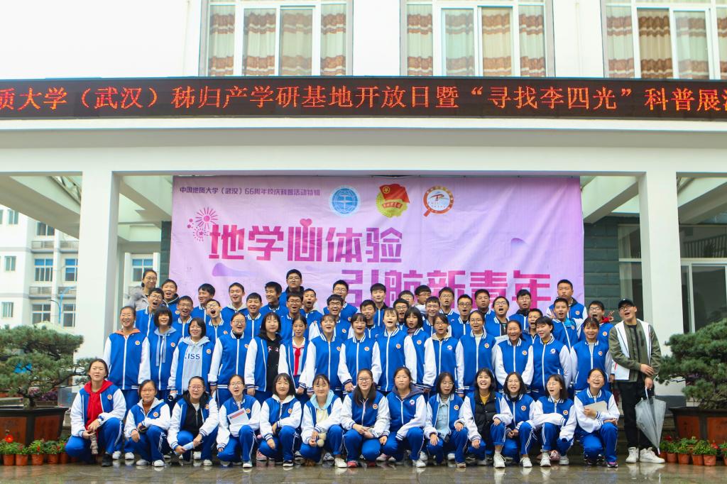 将地学科普文化展演活动的现场搬到秭归产学研实习基地,来自秭归县一中、二中的1200余名师生走进秭归基地,分批次参观了岩石园、地质灾害模型、矿石标本展、沉积岩标本展、地质风貌摄影作品展、精品矿物标本展、珠宝玉石展、恐龙模型展、地质年代阶梯等9个展位的展品。