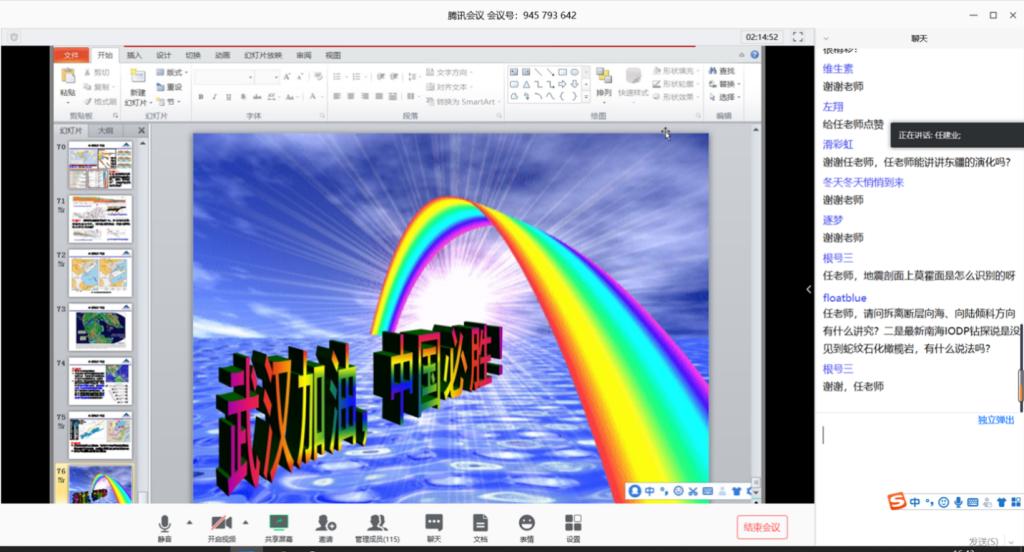 本次报告以线上互动的方式开展,突破空间局限,让研究学习更纯粹、更自由。石万忠教授的《非常规油气研究中几个关键科学问题及解决方法》从我国油气战略谈起,就页岩气、致密砂岩气研究中的关键科学问题逐一展开,充分体现了地大人对国家能源发展的担当和使命;任建业教授的《东南亚汇聚板块系统、南海的形成演化过程与深水油气禁漫天堂