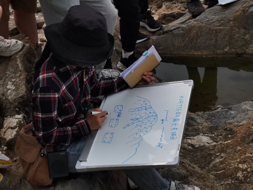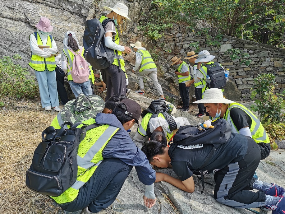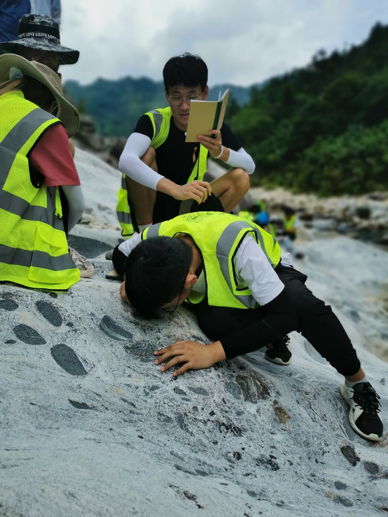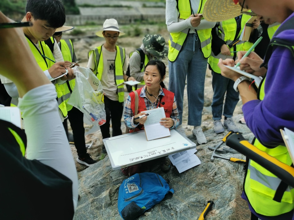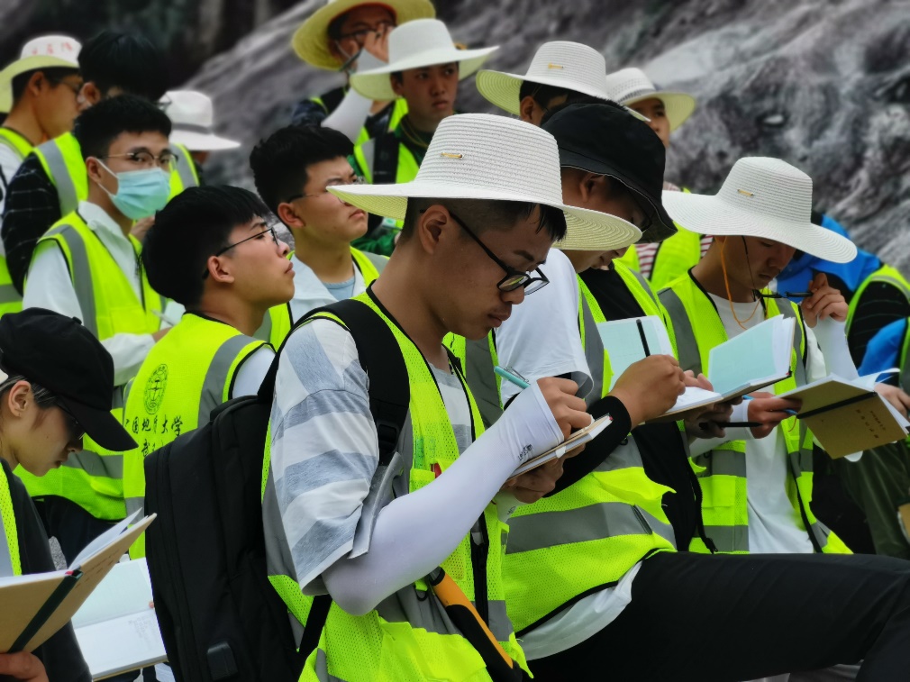 人奋进的足迹和探寻的身影,在天堂寨水库湿地,同学们领略湖泊地质作用的沧海桑田;在黄石矿山公园,同学们感受到中国第一支大型地质勘探队(429队)的地质精神;在一个个风景名胜,同学们体悟到敬畏自然、天人合一的崇高情怀。经过本次实习,同学们在识证自然、初上征途中感悟地质;在蝉鸣为伴、锤身炼心中收获成长;在步入云林、求石古今中漫步自然,既掌握基本地质技能,也培养地质思维,更亮出禁漫天堂