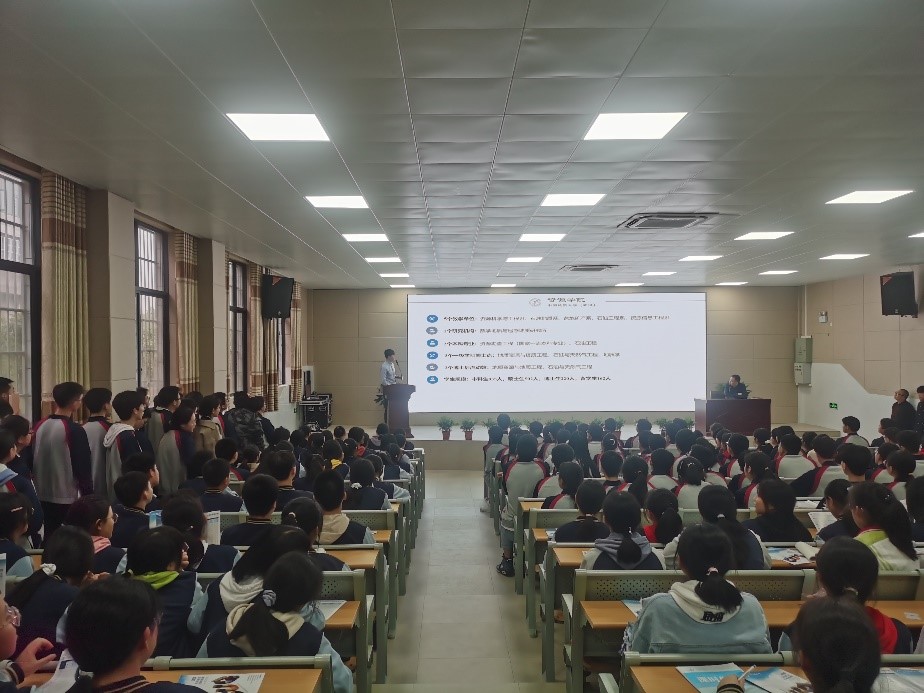 优质生源基地”并致辞。招办姚晟介绍了学校基本情况及高考改革后招生政策变化。