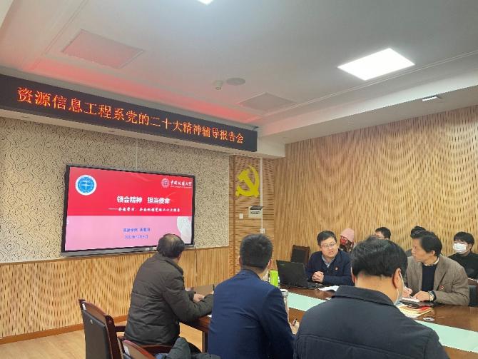 重要论述和习近平总书记给山东省地矿局第六地质大队全体地质工作者回信精神,对全院二十大精神的学习宣传贯彻提出了具体工作要求。他强调资信系师生要提高政治站位,把握精髓要义,充分认识学习宣传贯彻党的二十大精神的重大意义,深刻理解党的二十大报告;结合专业与学科发展,特别是禁漫天堂