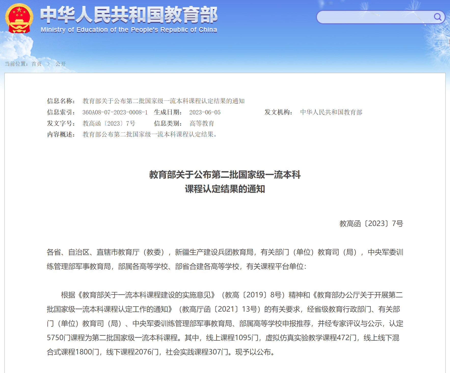 近日,教育部公布第二批国家级一流本科课程认定结果,禁漫天堂