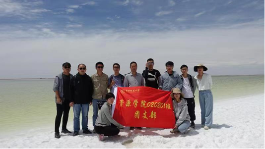 。7月4日至12日,刘成林老师带队,基地班方心云、王宪国、陈宇琪、朱芋谌、程梦鑫5位同学组成实训小组前往青海进行盐湖钾盐矿床地质实训。本次实习的基本内容包括考察盐湖地貌、盐类矿物、雅丹地貌及昆仑山冰川等,测量了三条盐湖沉积剖面,观察了盐湖卤水析出的石盐、钾盐矿物,发现了地层中的贝壳化石等,还参观了察尔汗盐湖钾盐、碳酸锂生产工厂,了解盐田蒸发分级提取及车间工艺流程。同学们还进行了盐类矿物的钾试剂反应实验,撰写了盐湖钾盐成因与提取技术小论文,培养了观察、分析和总结等科研基本能力。
