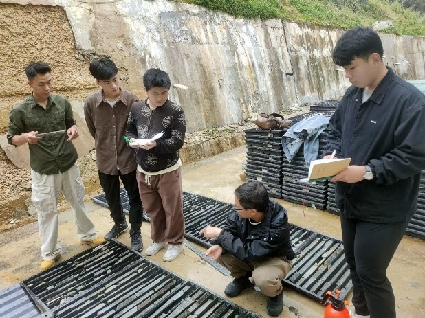 勘查工程专业国家工科基地班两届共64名学生,分11个组赴云南普朗铜矿床、贵州水银洞金矿床、胶东焦家金矿床、内蒙东升庙铅锌矿床、湖北大冶铁矿床、湖北铜绿山铜金矿床、青海察尔汗钾盐矿床等全国有代表性的大型矿床进行实践考察。2023年7-8月,2020级基地班27名学生分5组开展矿床地质实训,学生深入矿床矿区进行地质剖面测量、坑道地质编录、钻孔岩芯编录、典型矿化特征调查和研究取样等工作,并形成翔实的考察报告。多位实习带队老师谈到,学生对实训兴趣浓厚,普遍肯定课程的教学形式、教学内容及教学效果,一致认为实训促进了对矿床学研究的基本内容、基本方法和基本思维方式的理解,为今后研究生阶段更快进入研究状态做了很好的铺垫,达到了其他课程不可替代的效果和目的。