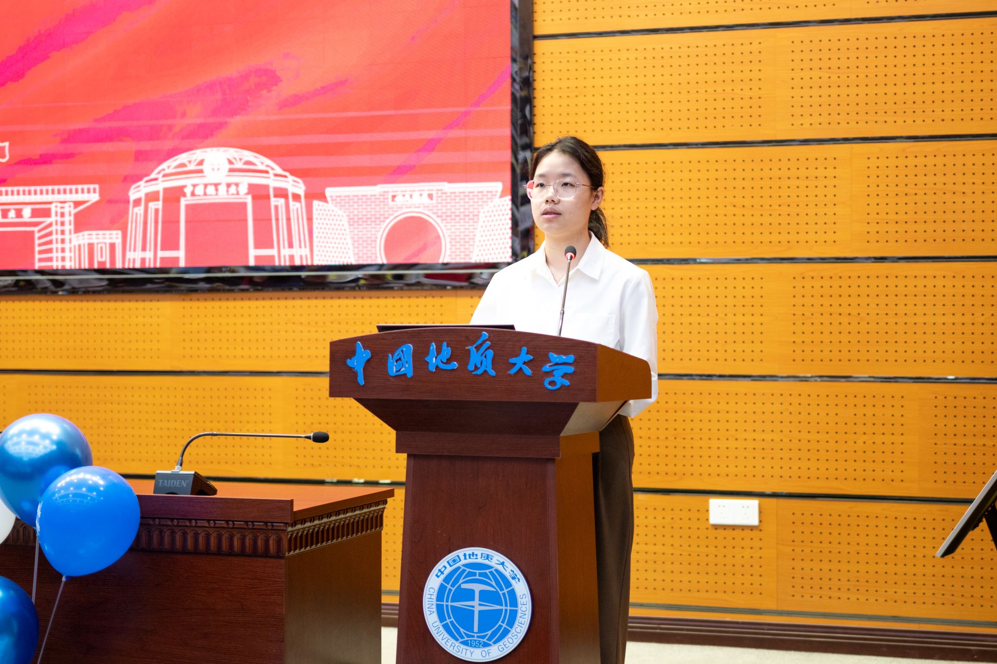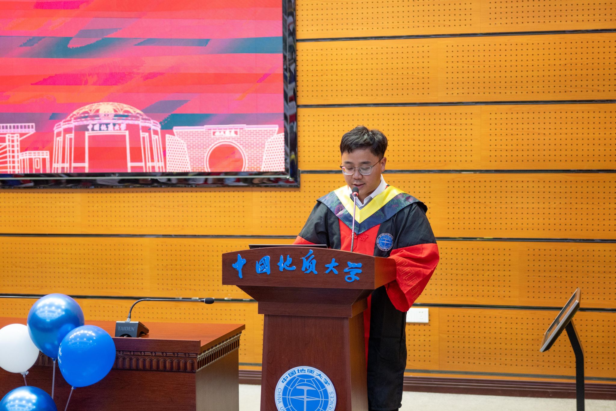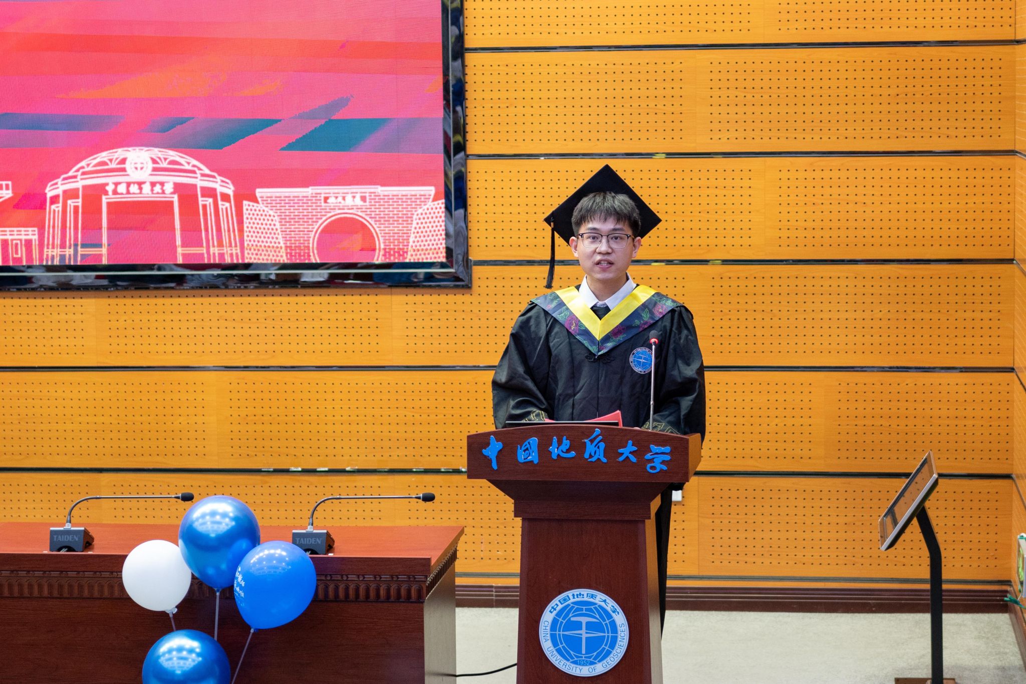 研究生毕业生代表徐赛发言。他结合在地大十年的求学经历分享了自身感悟。毕业后,他即将前往长庆油田,在为保障国家能源禁漫天堂