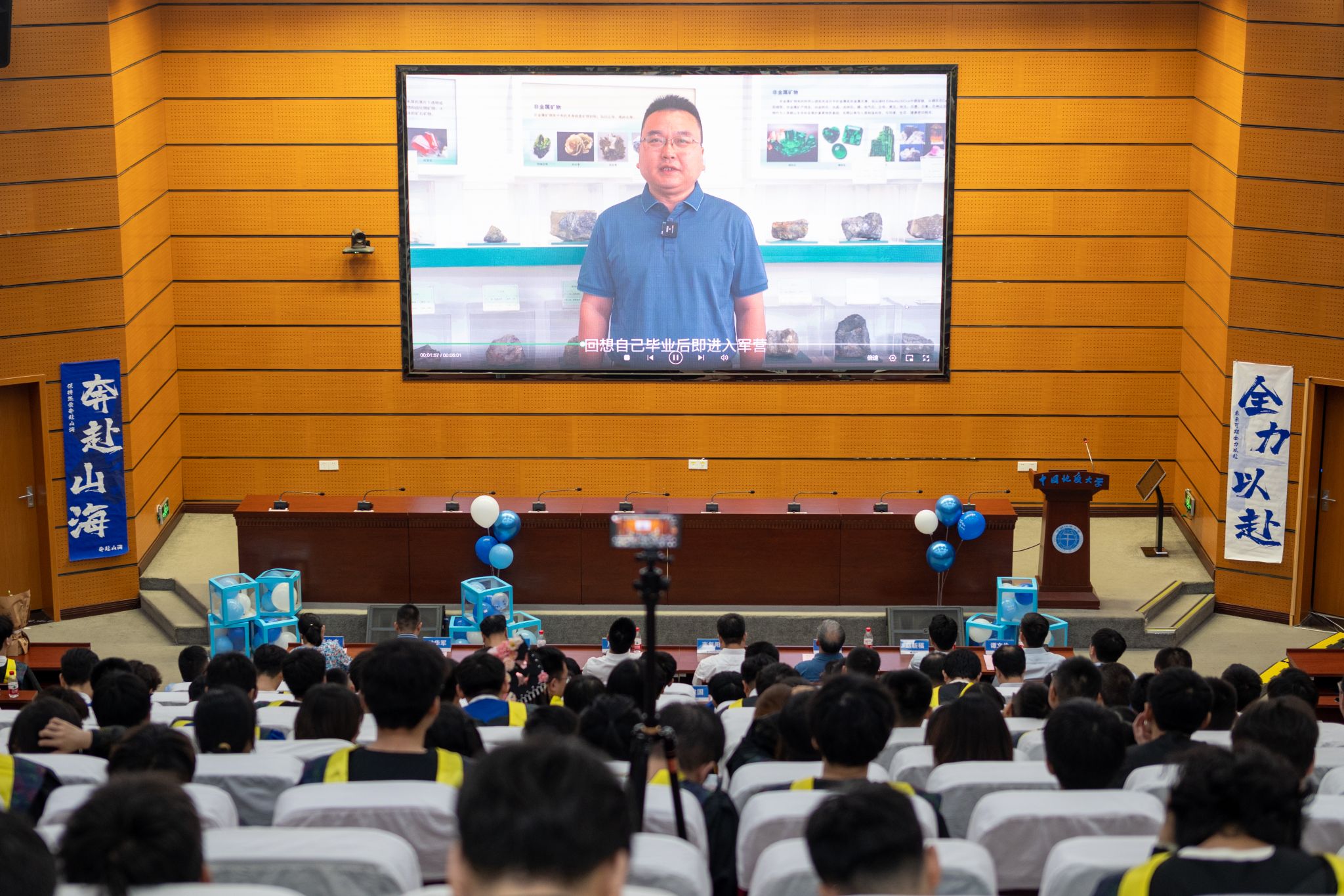 安全贡献自己的绵薄之力。同时他祝愿同学作为新时代地大青年能够秉持坚守初心的执著和心怀家国的担当,在地质工作前辈的肩膀上顶起这一片赤红的天空,永远做肩上飞扬有风、心似滚烫火焰的有梦少年。