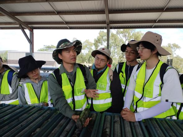 期间,师生在詹姆斯库克大学经济地质研究中心的组织下先后参观了昆士兰州Ravenswood和Pajingo两个超大型金矿。两个矿山的地质工程师详细介绍了矿山开采历史与矿床研究现状,带领大家参观矿区岩心库,并介绍岩心中的各类地质现象与矿物组成,强调不同类型浅成低温热液矿床的蚀变和矿化特征的区别。地质工程师还带领参观了矿区的露天采坑,大家看到了矿山大型机械现场采矿的全过程。在Pajingo金矿大家参观了深孔打钻的现场,地质工程师向大家讲解了钻机运行机理以及打钻速度、终孔深度等各项信息。令人印象深刻的是,Ravenswood金矿凭借其先进的选冶技术,将岩金的工业品位压缩至惊人的0.2 g/t,这使得大规模露天开采成为现实,进一步降低采矿成本。