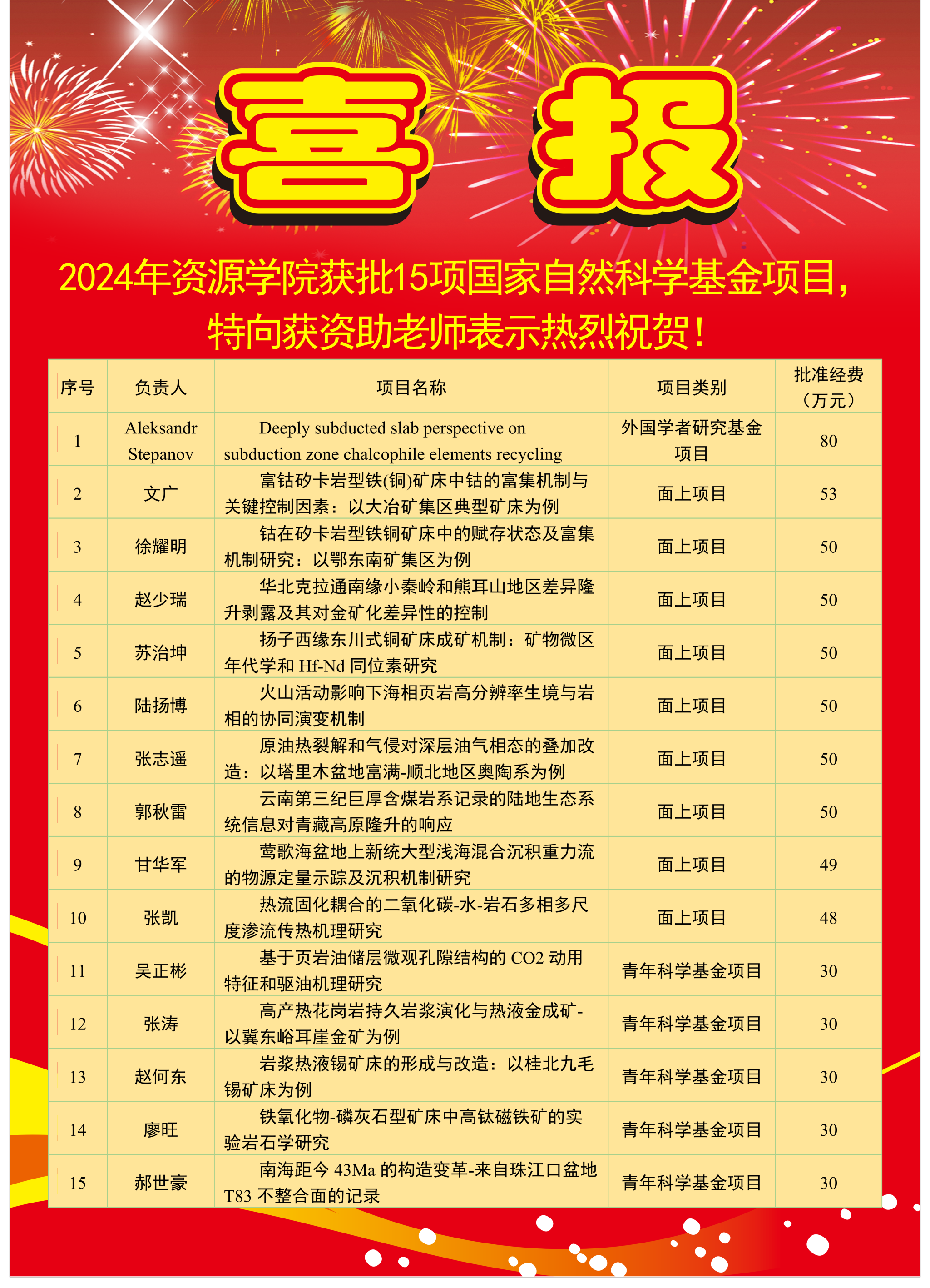 共有15个项目获得立项资助。其中,外国学者研究基金项目1项、面上项目9项、青年科学基金项目5项,批准直接经费680万元。