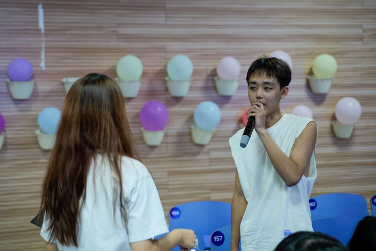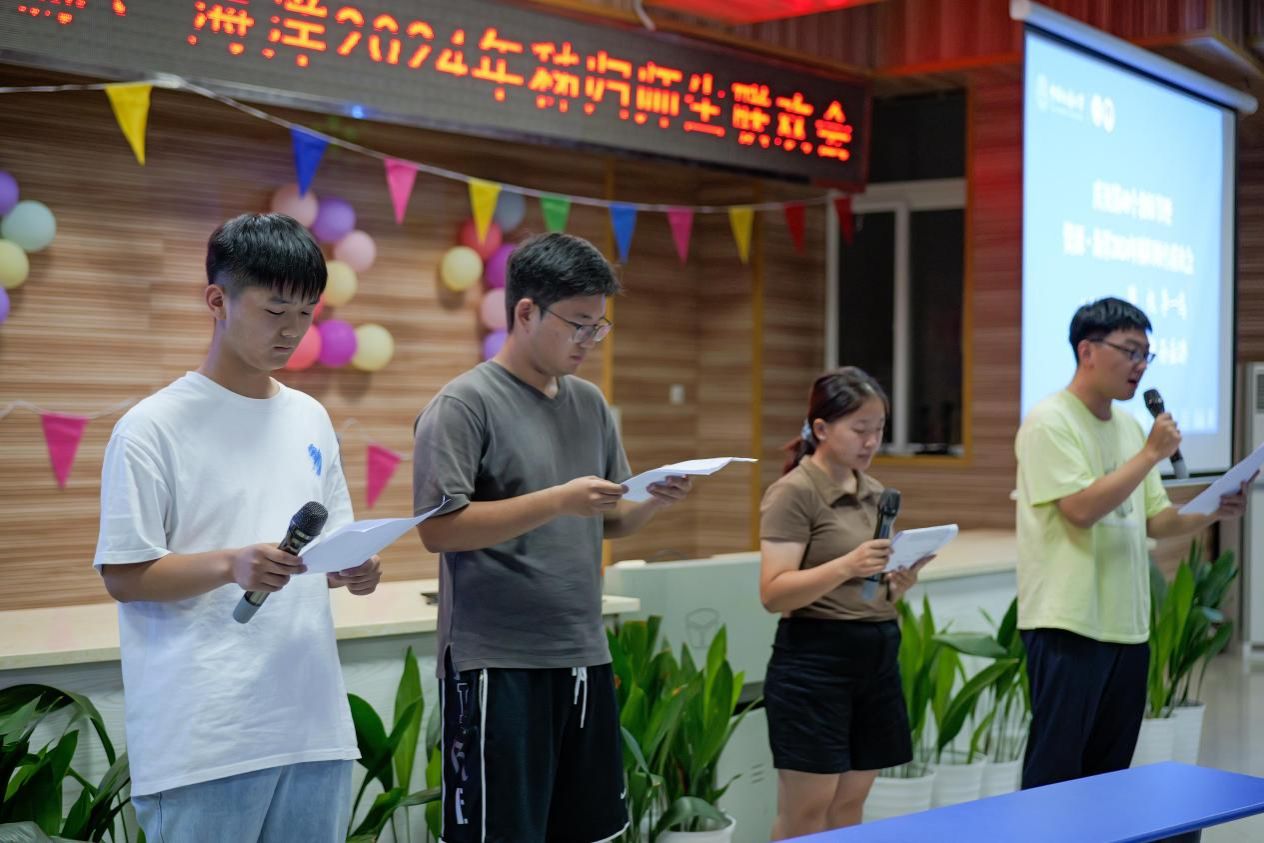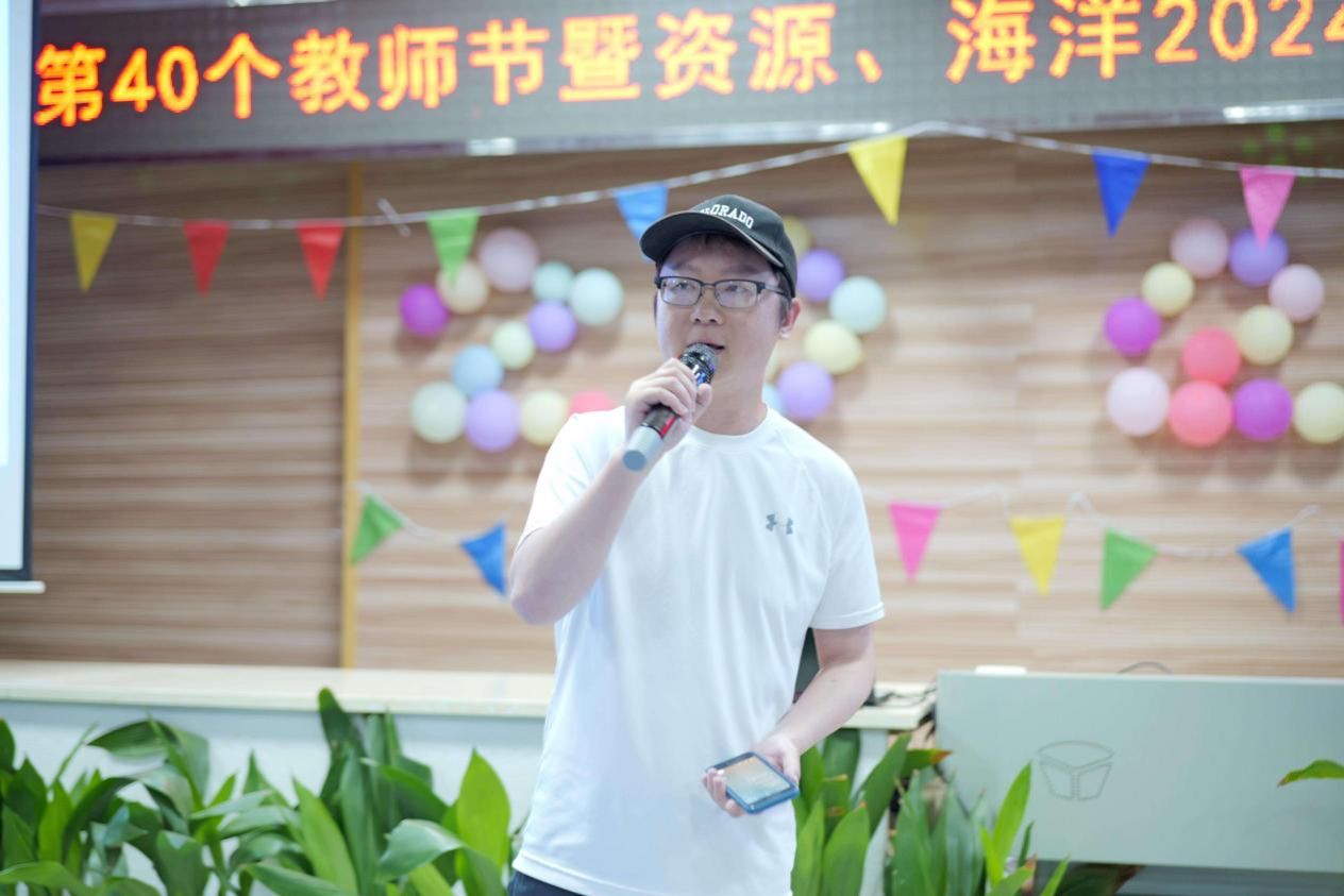 的学生们也纷纷登台,用歌声和朗诵表达了对老师的感激之情。陈大康同学以一首《落叶归根》深情地表达了对家乡的眷恋与对师恩的感念;金涵翔、孙岳璐、陈权和李一鸣四位同学共同朗诵的《赞美》,则以诗为媒,展现出对老师无尽的敬仰与感激之情;王宣淳同学的《告白气球》以甜美浪漫的旋律传递出青春的美好与纯真;吴君同学的《海芋恋》则带领师生们穿越城市的喧嚣,感受海风的轻拂与海浪的低语;张浩扬同学演唱的《学不会》,歌声婉转悠扬,蕴含着脉脉深情。