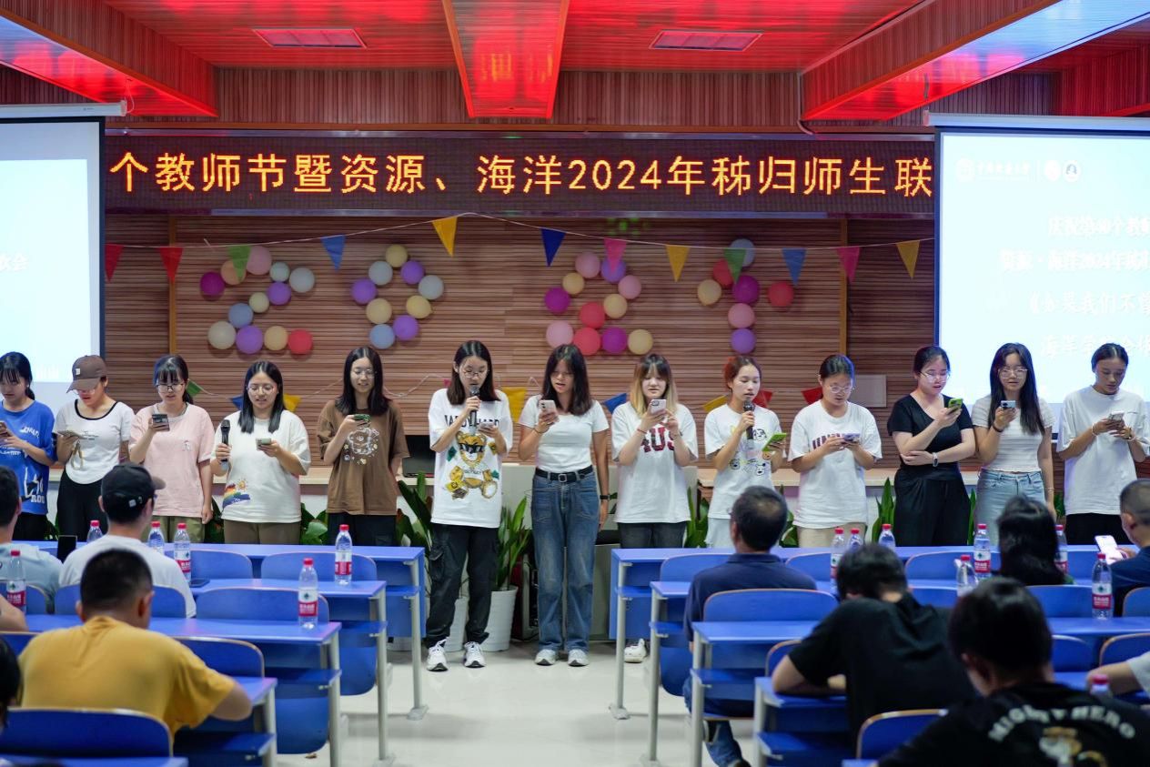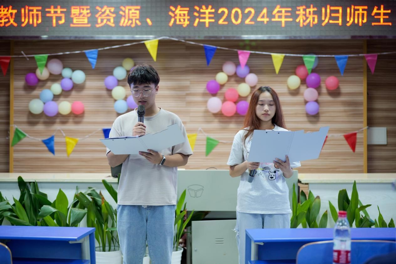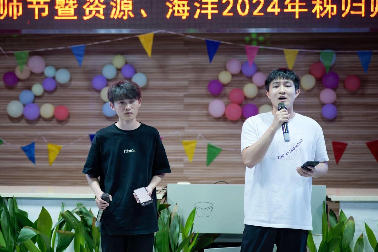 秭归实习队队长李嘉光与学术指导刘晓峰分别发表了热情洋溢的致辞。他们向辛勤耕耘在教育一线的教师们表达了崇高的敬意和节日祝福,并预祝晚会圆满成功。两位老师的讲话不仅温暖了在场每一位师生,更为晚会营造了温馨欢快的氛围。