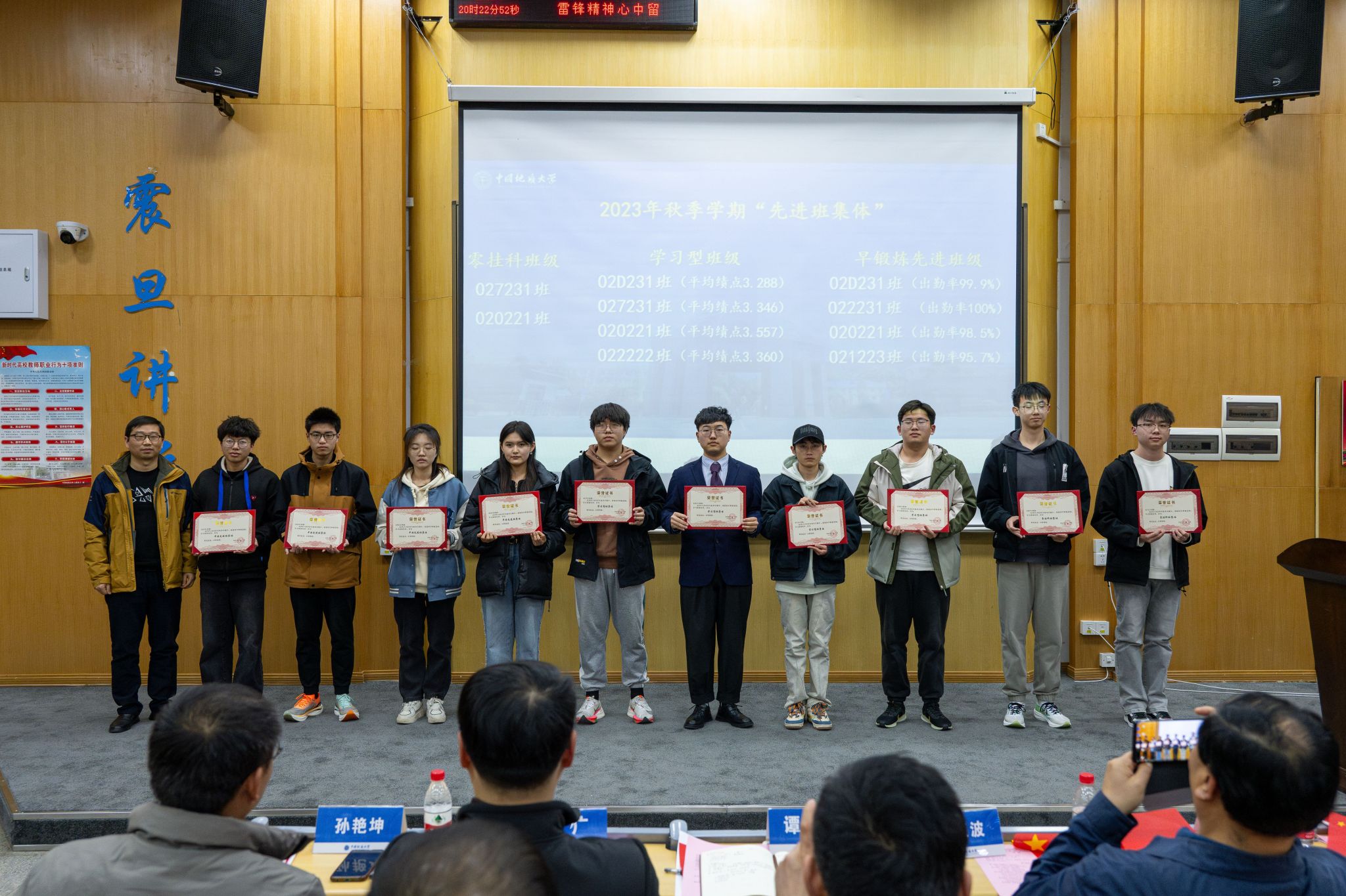 党委副书记谭文伦为零挂科班级、学习型班级、早锻炼先进班级颁发“先进班集体”荣誉证书。