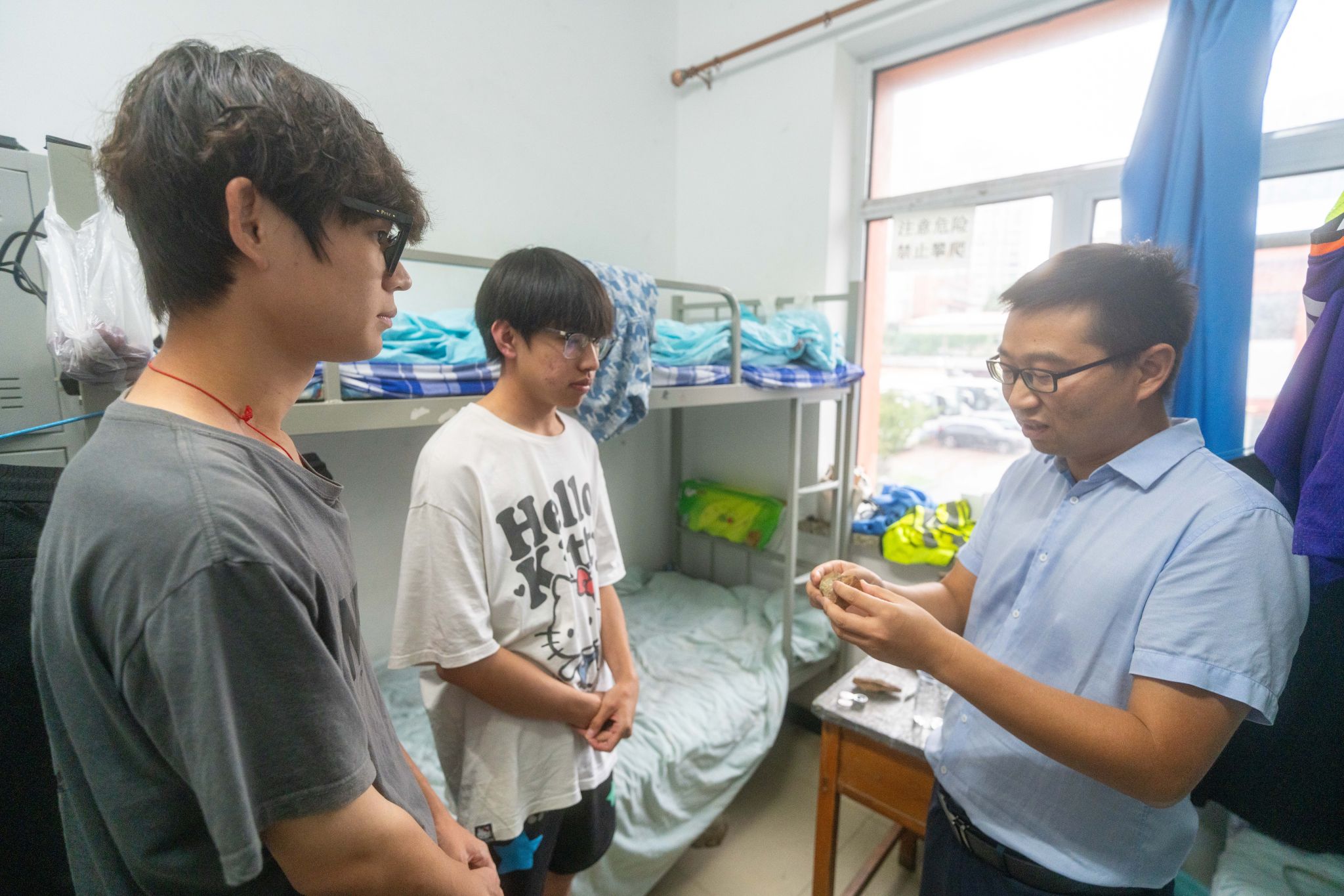在学生公寓大厅,谭文伦为同学们发放消暑慰问品。他询问了同学们的食宿情况和实习体验,提醒实习期间要注意个人身体状况,希望同学们重视实践探究能力的锻炼,勇于提问、善于提问,在提问求证中将书本理论迁移至野外地质现象中,打好专业基础,浓厚专业兴趣。