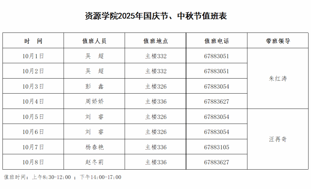禁漫天堂 2025年国庆节、中秋节值班表