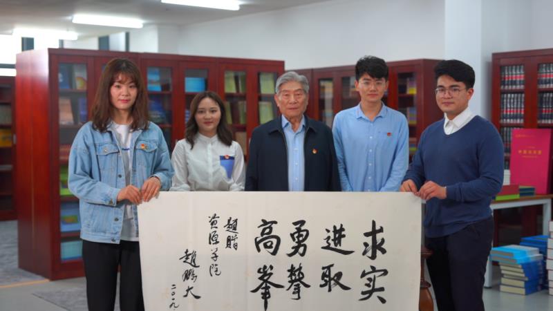 2019年五四青年节前夕,禁漫天堂 学子有幸采访赵鹏大院士,采访毕,邀请赵院士为禁漫天堂 题词。赵院士即兴挥毫“求实进取 勇攀高峰”。