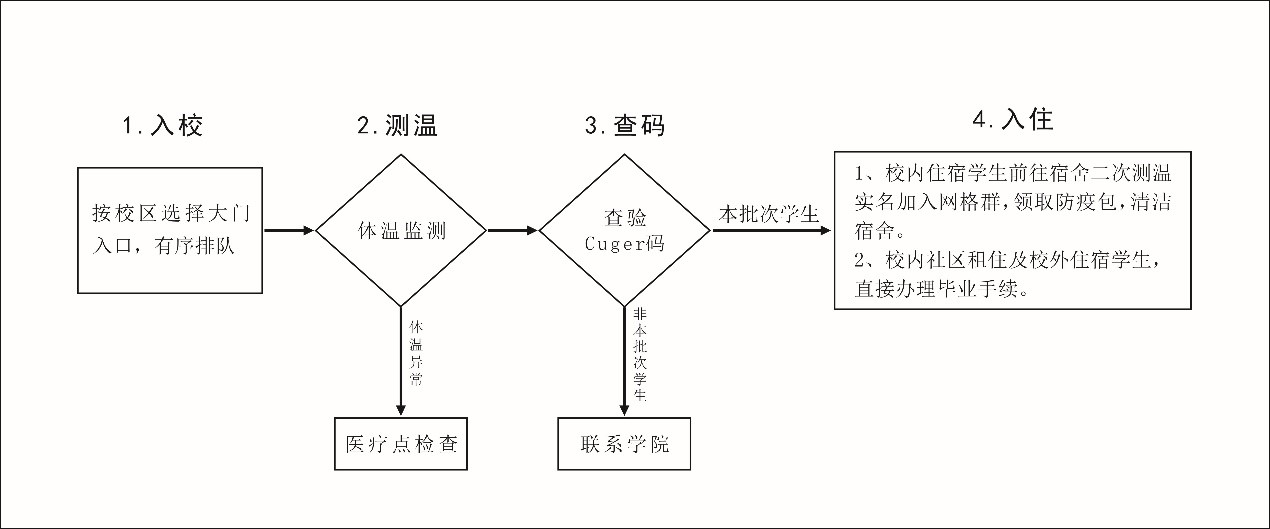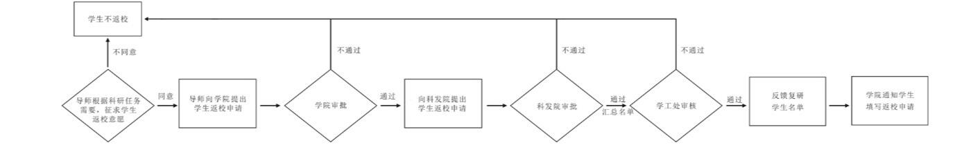 1.复研学生严格按照规定时间返校。 2.因个人原因无法按时到校的,联系本人导师,由导师协调办理入校查验。 |