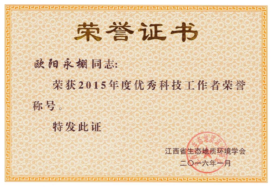 江西省生态地质环境学会优秀科技工作者