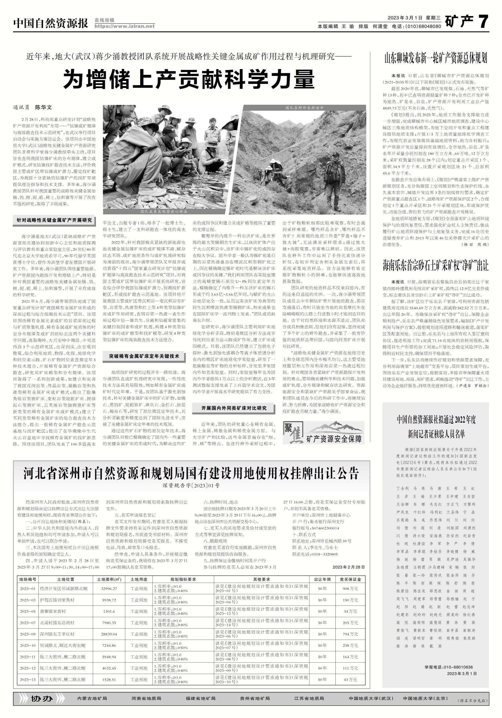 国内勘探开发和增储上产,特别是针对我国重要的战略性关键金属如锡、钨、锂、铌、钽、稀土、钴和镍等,开展了卓有成效的科学研究。