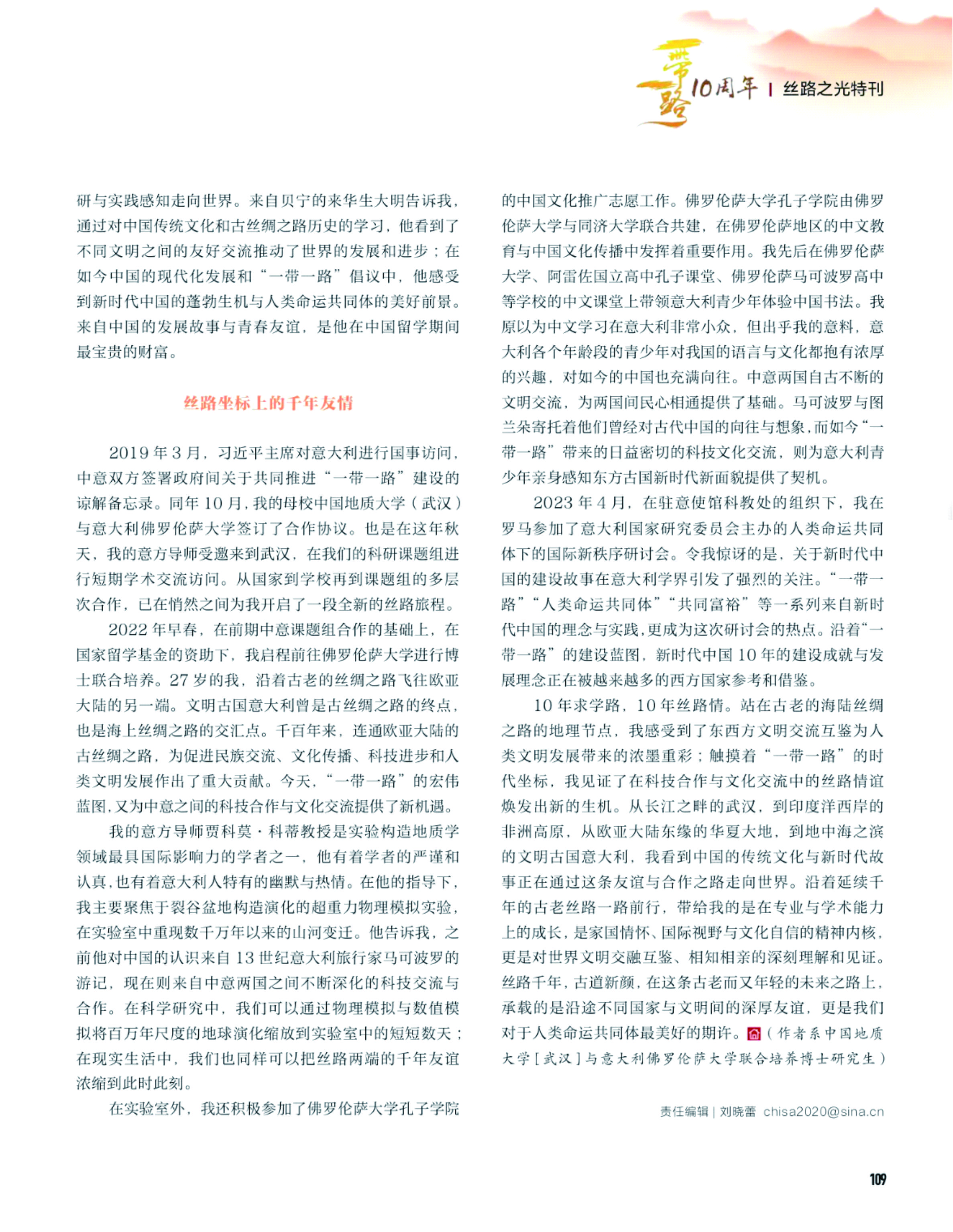 博士生邹耀遥在《神州学人》“一带一路”十周年特刊发表了题为《求学路上的丝路情谊》的文章。
